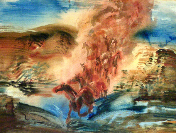 Часто на листе художник применял различные техники и краски, его темперамент выплескивался в работы, зачастую не успевая за настроением.